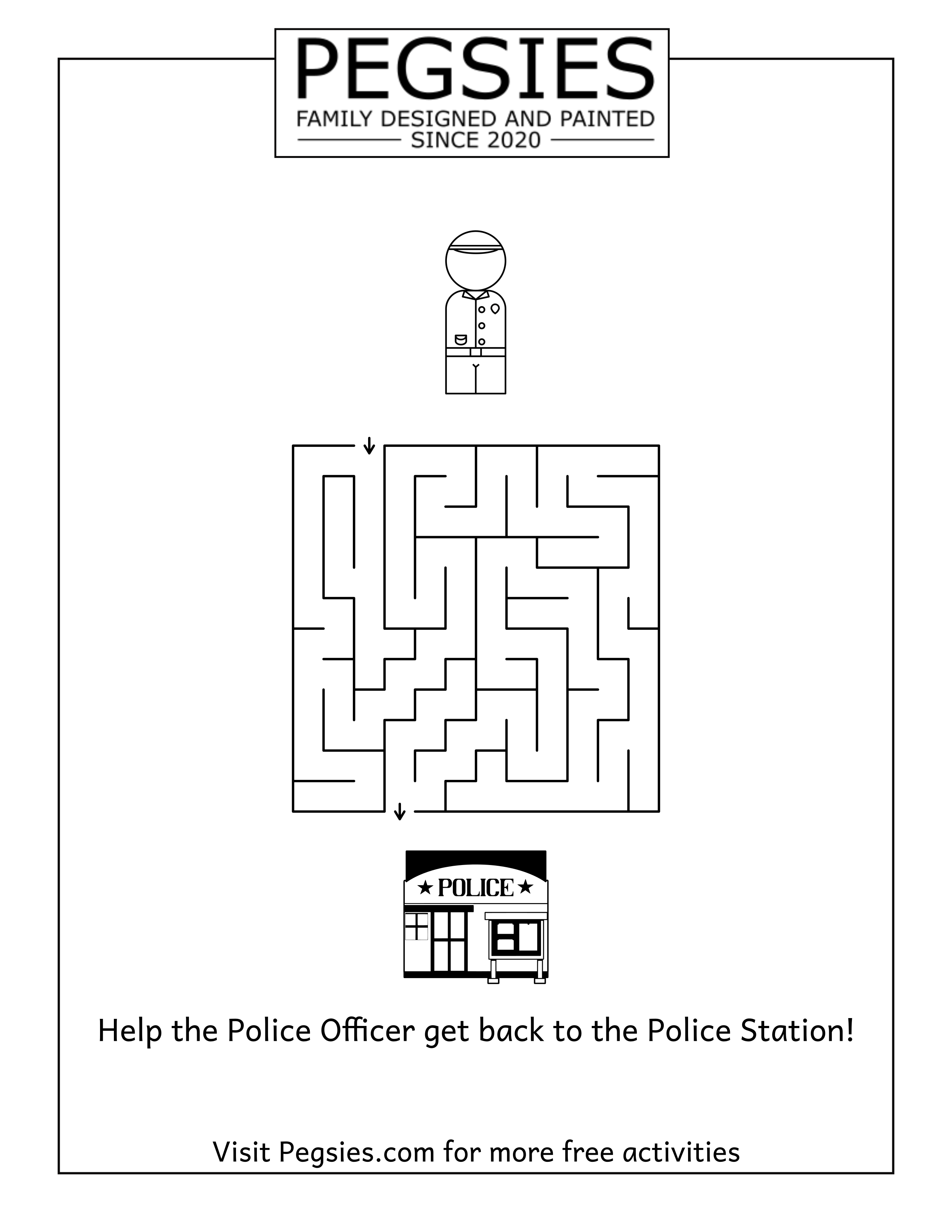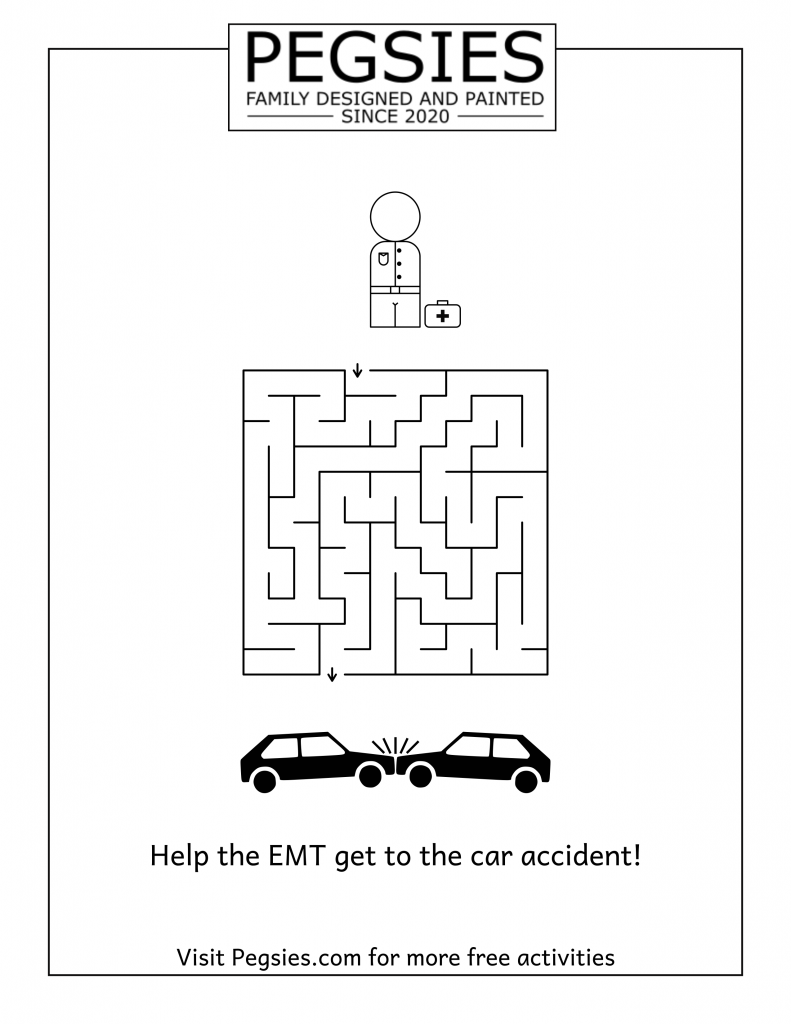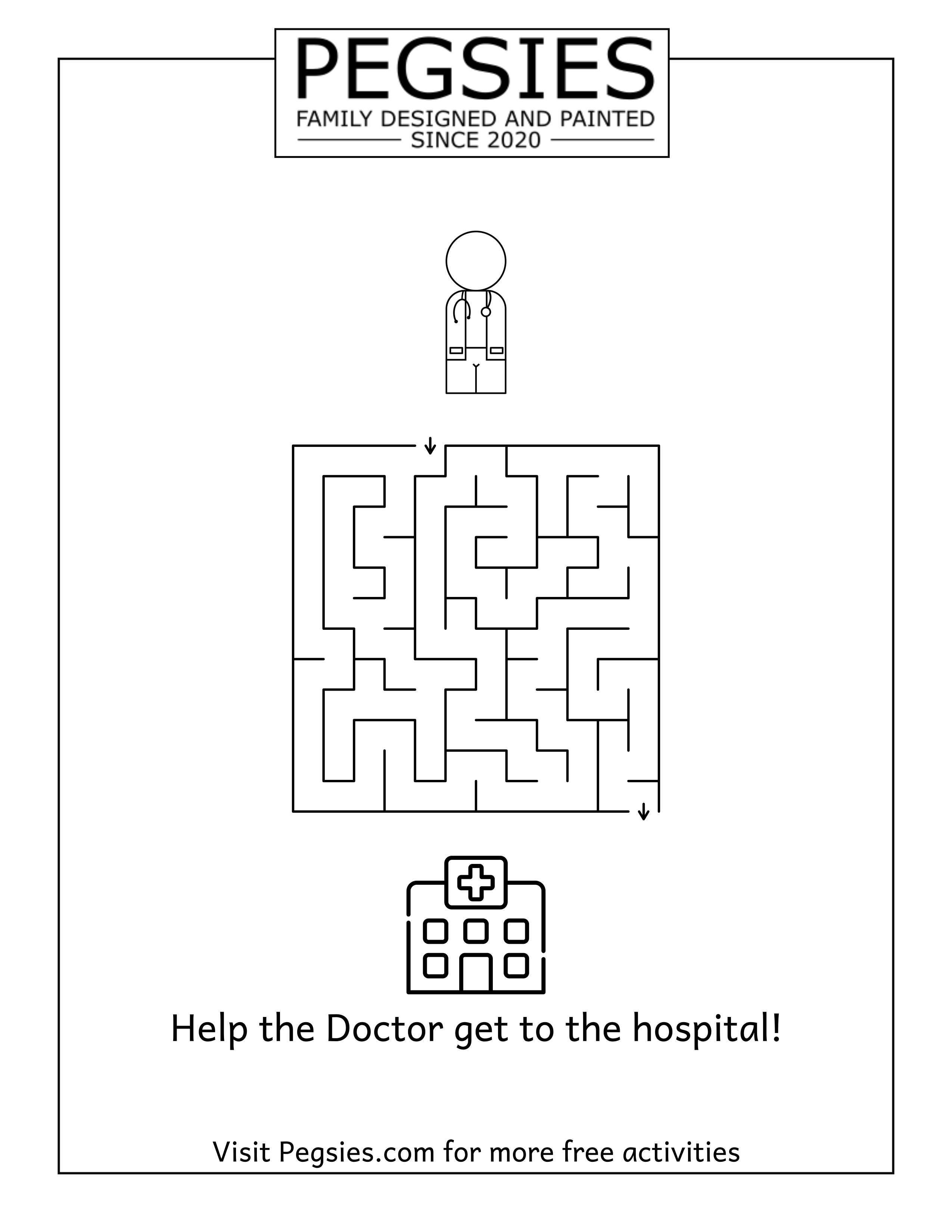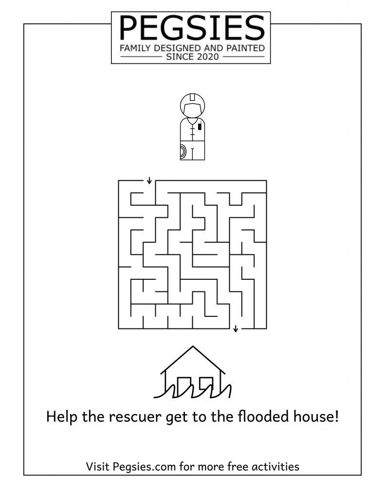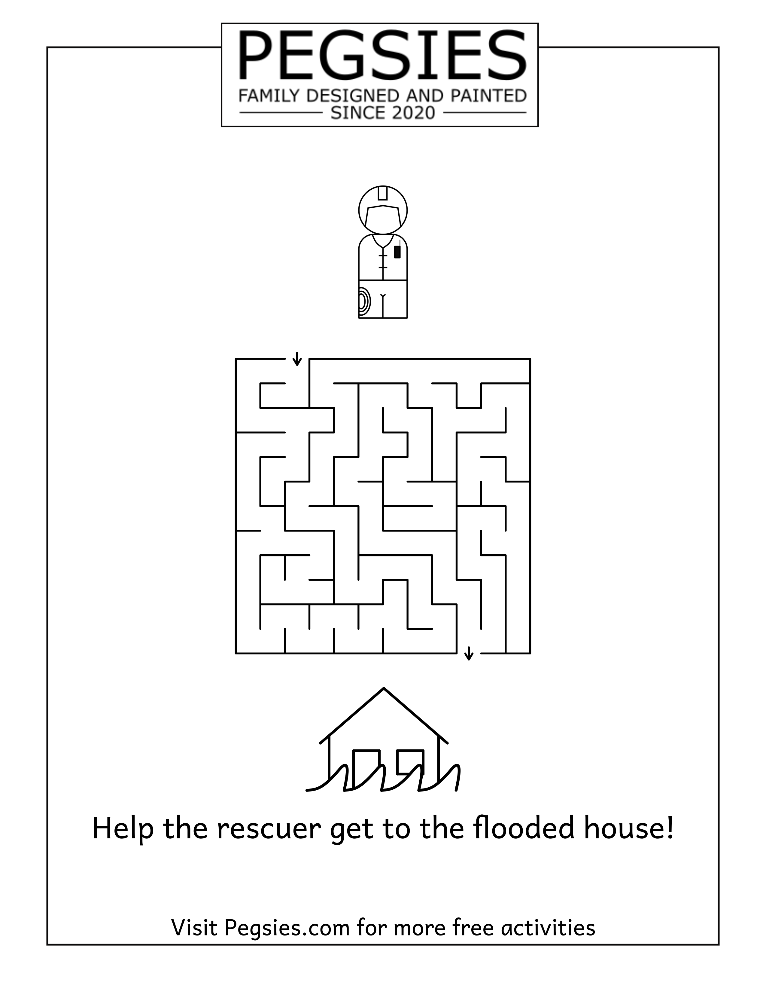 Have fun and wind your way through a Pegsies maze! Help the Doctor travel to the hospital or the Rescuer save a family in a flooded house. Grab your Pegsies and play along!