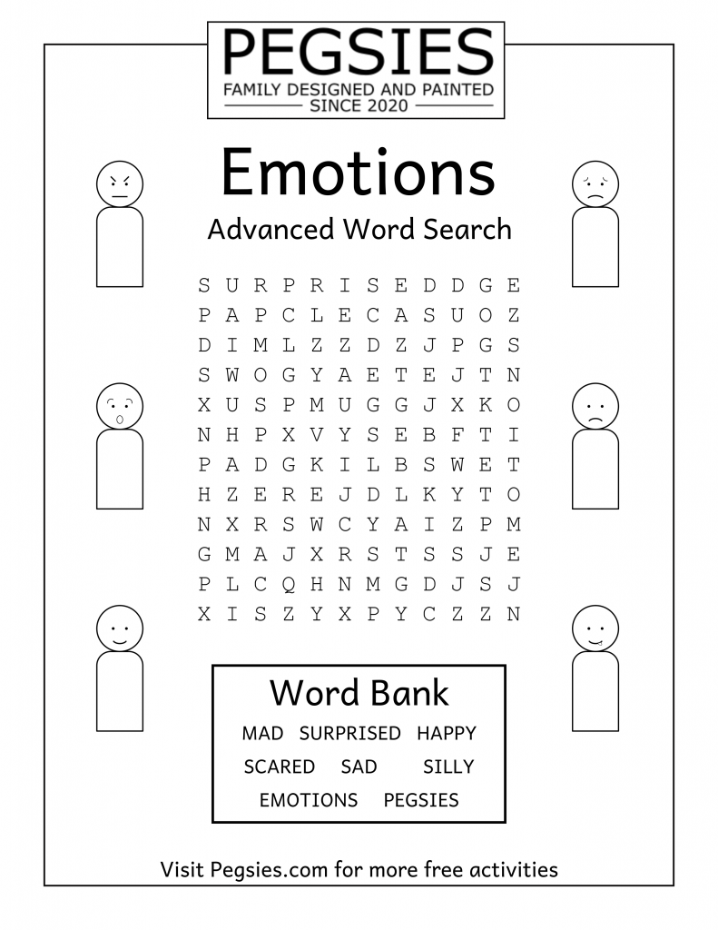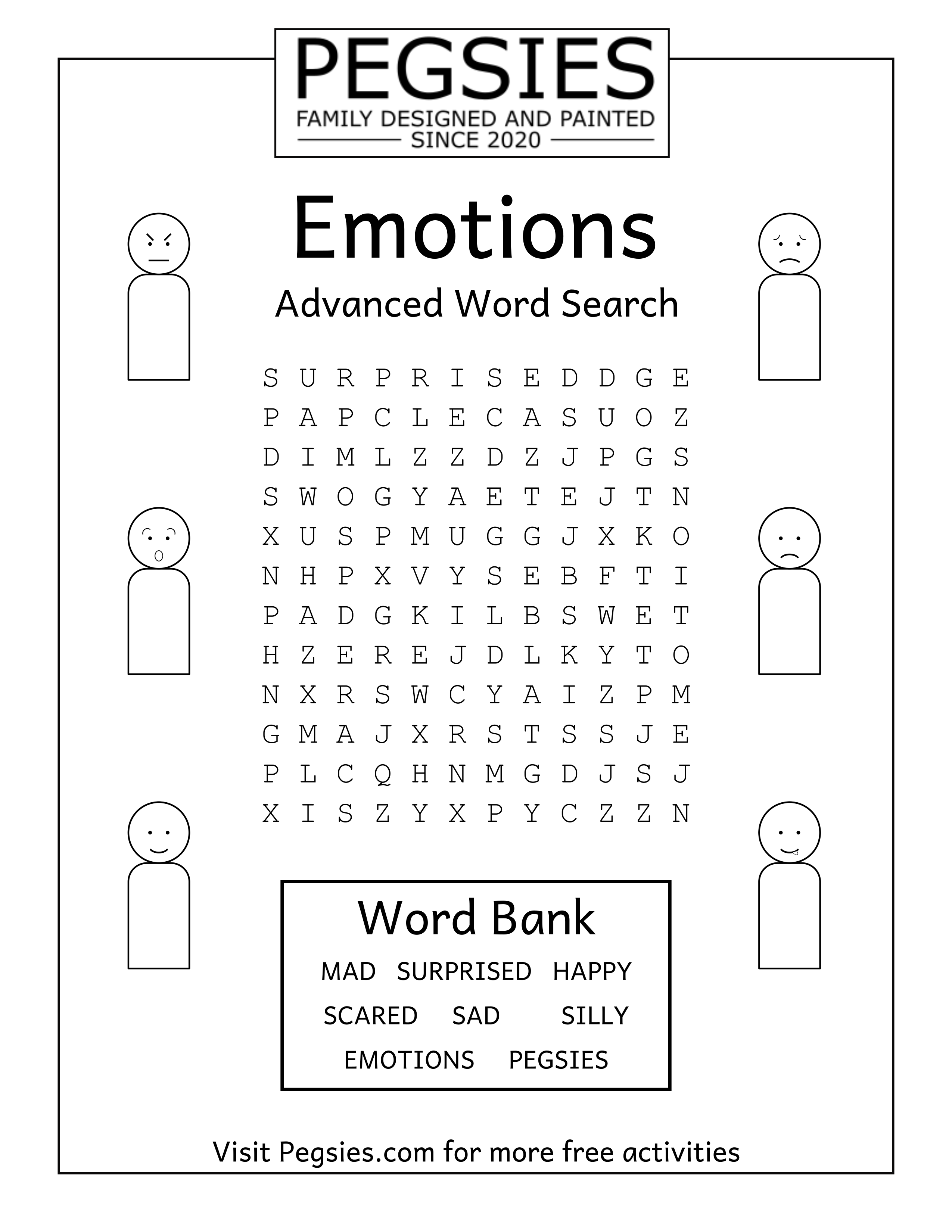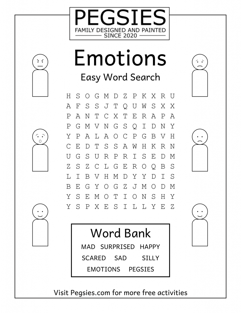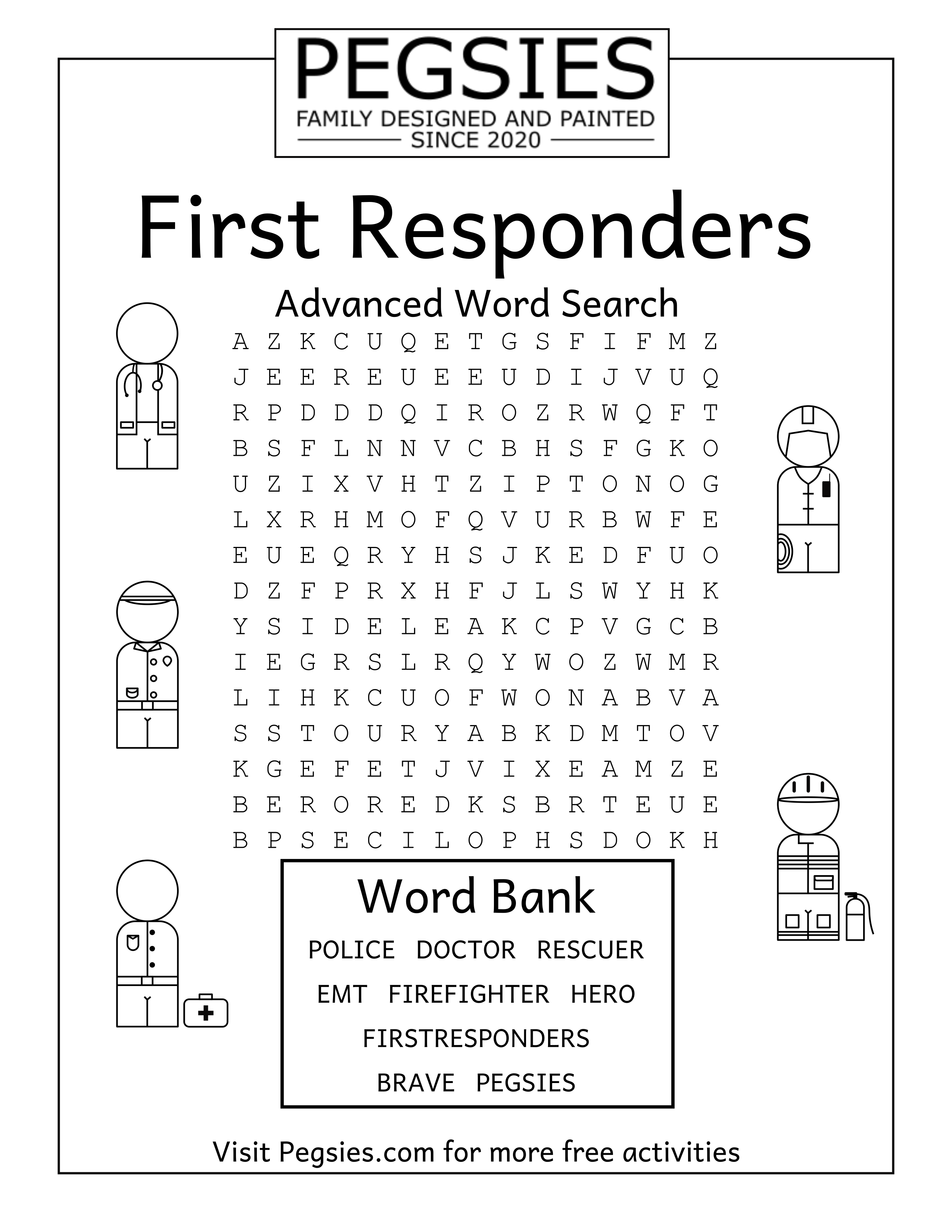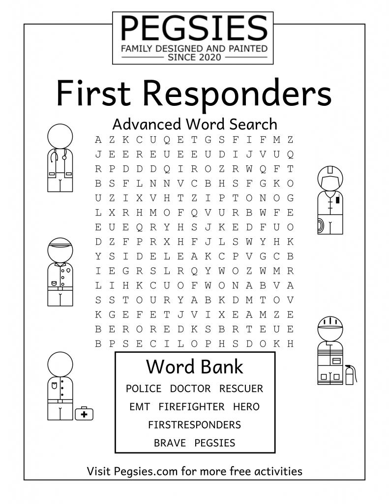 Activity Pages – Word Searches Have fun and challenge yourself to some Pegsies Word Searches! Grab your Pegsies, find the hidden words, and play along. Collections First Responders Collection Emotions Collection First Responders Collection Download: Image or PDF Download: Image or PDF Emotions Collection Download: Image or PDF Download: Image or PDF