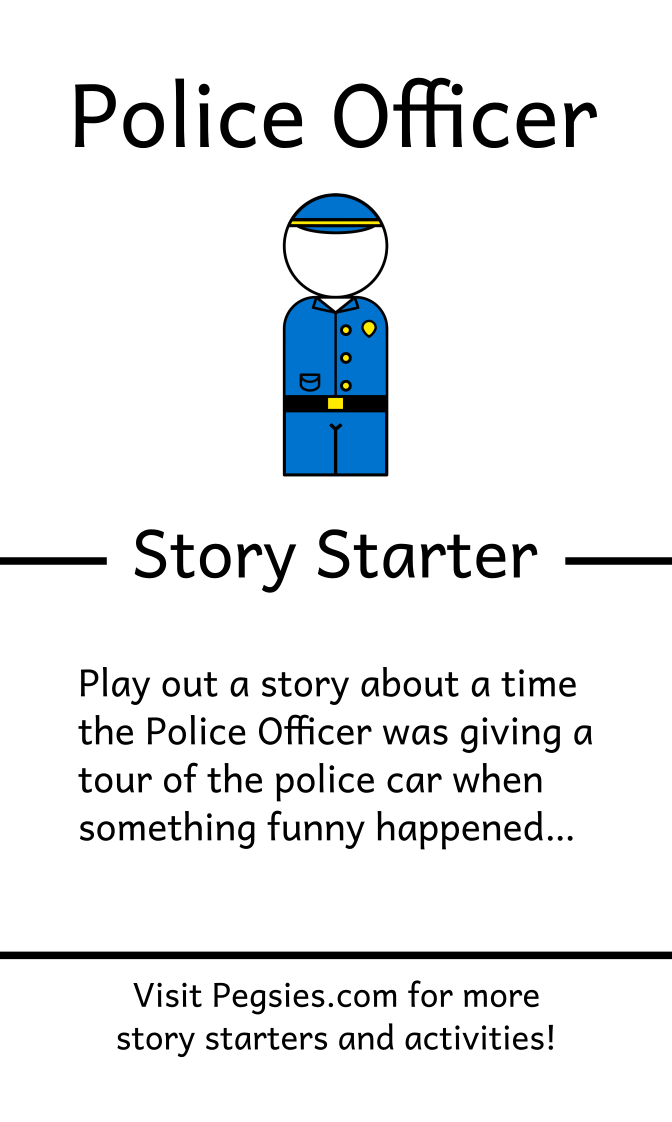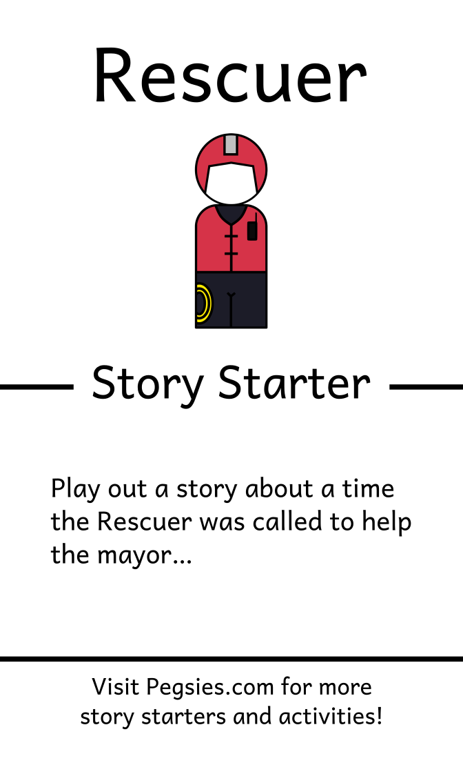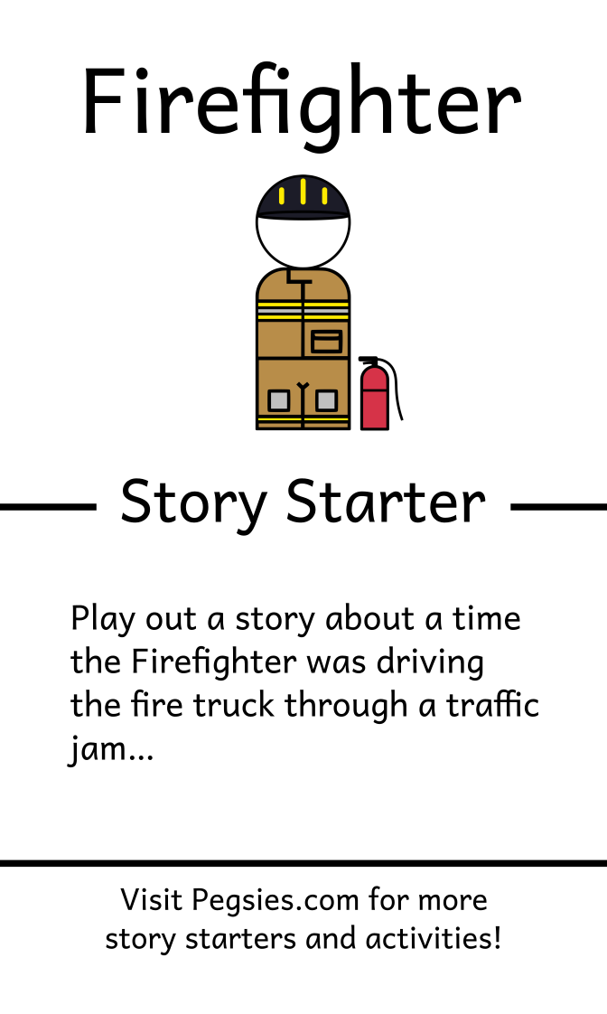 Below are all Story Starters for Pegsies First Responders Collection. You are free to use, save, print, and share these Story Starters. If you are feeling inspired, you can even submit your own Story Starters to be possibly included in our Fan Section.